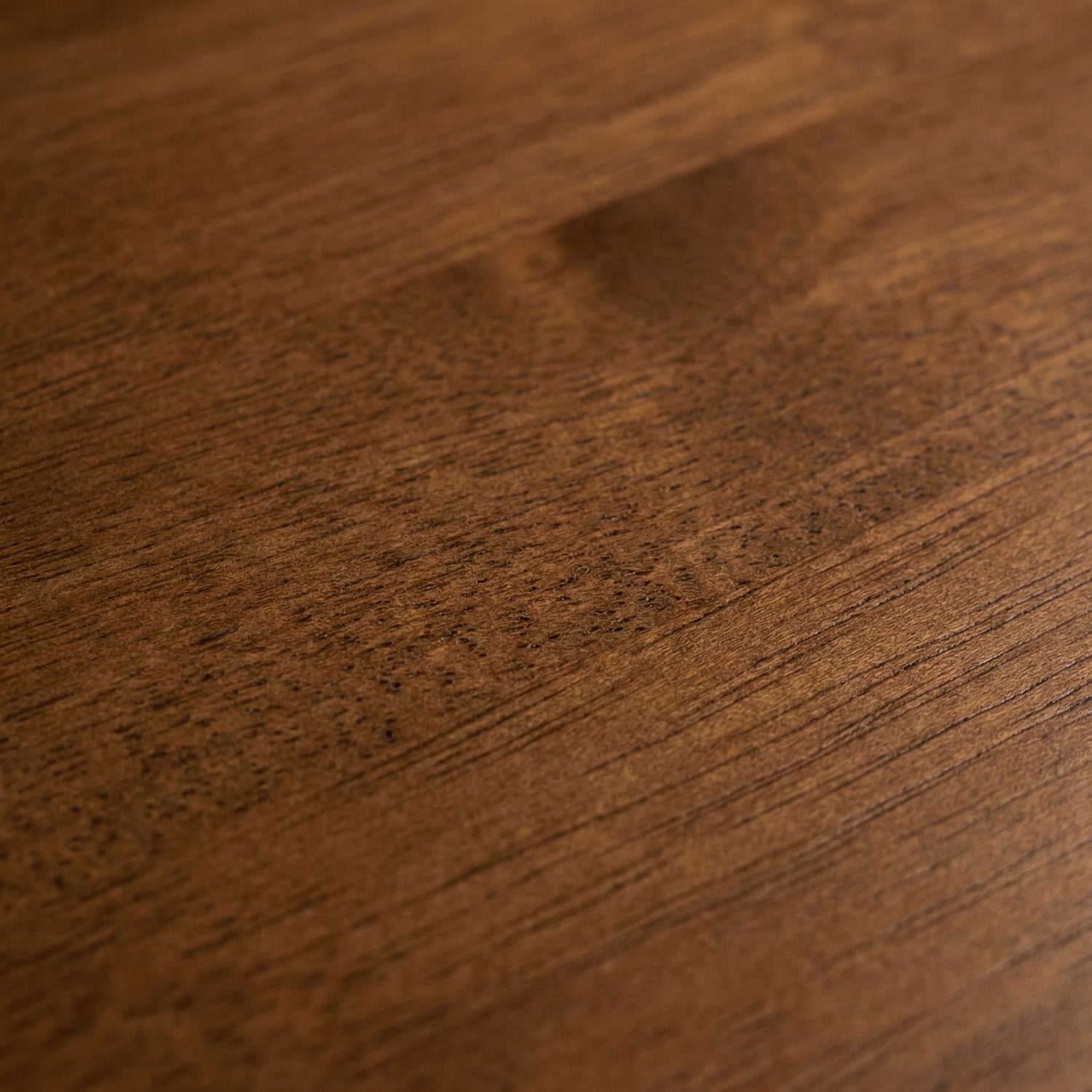 Do codziennej pielęgnacji wystarczy sucha lub lekko wilgotna ściereczka. Naturalne wykończenie chroni powierzchnię drewna i nie wymaga dodatkowego olejowania ani specjalnej konserwacji. Z czasem mogą pojawić się subtelne ślady użytkowania — to naturalna patyna, która podkreśla autentyczny charakter litego drewna.